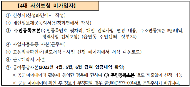 - 4대 사회보험 미가입자의 경우, 3개월(2023년 4~6월) 평균 급여가 310만 원 이하인 자