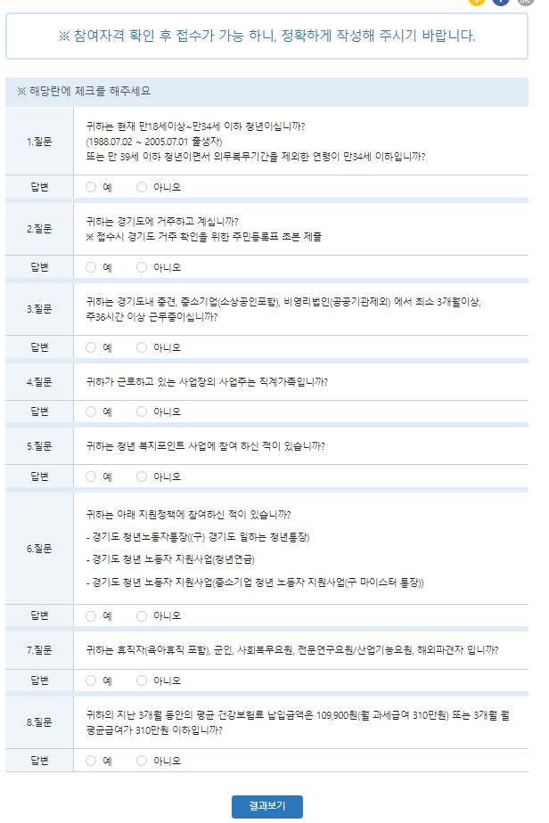 2) 경기도 청년 복지포인트 참여 이력이 있는 자