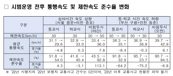 ※ 심야 시간 속도 상향 : [기존] 전일 30km/h → [변경] 07~21시 30km/h / 21~07시 50km/h