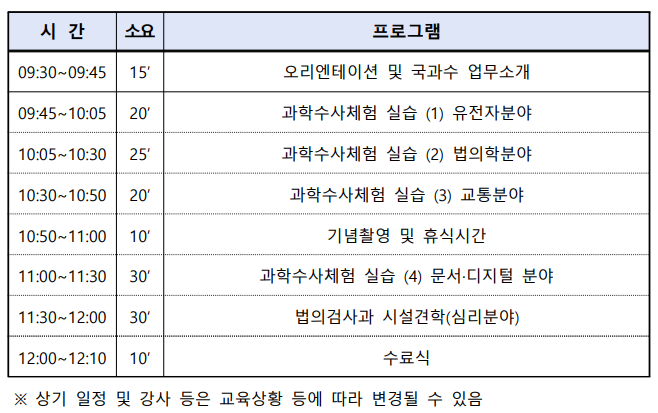 2. 과학수사 체험교실 프로그램 및 세부 내용